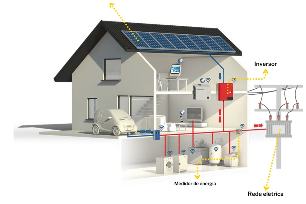 A energia é enviada para a distribuidora local, que desconta o consumo da energia elétrica ativa, em Watts, na mesma unidade consumidora e geradora, ou ainda de outra unidade consumidora, desde que vinculada a quem gerou nas seguintes modalidades: